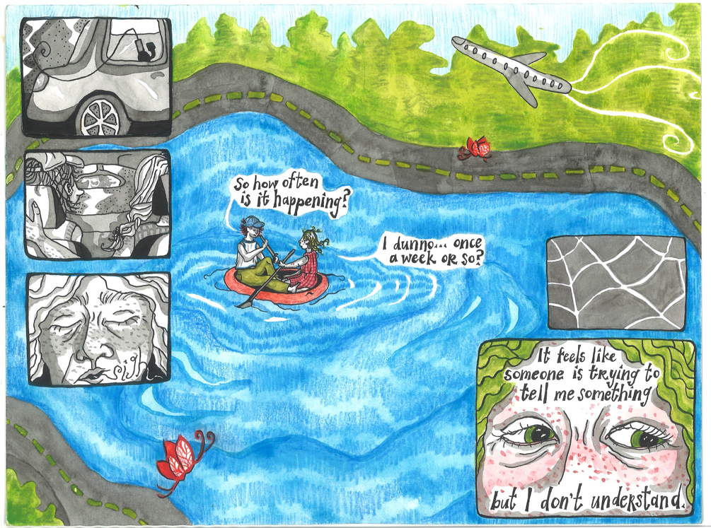 Phoebe Mol takes readers through an abstract and strange world where grotesque fish, polluted lakes, and the work of Clarice Lispector all bleed through the thin veneer of reality. Mol's vivid colors and strange, disjointed narrative recall the work of Noel Freibert in this stunning mini-comic debut.