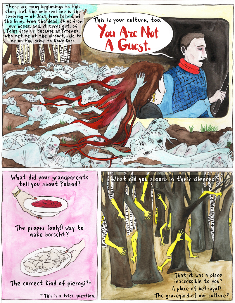 "In You Are Not A Guest, Leela Corman is in a no holds barred wrestling match against Trauma set to the tune of an antifascist punk band. She leads us into the heart of her personal tragedies: the death of her daughter, and her family’s history in the Holocaust, but in not sparing the reader, she gives us her power. These are 'wounds that never heal', but she provides us with a roadmap of the changed place beyond sorrow, a cosmic song that reaches beyond time and space to comfort us. I am deeply grateful for her fearless work." — Lauren Weinstein, author of Girl Stories and Goddess Of War